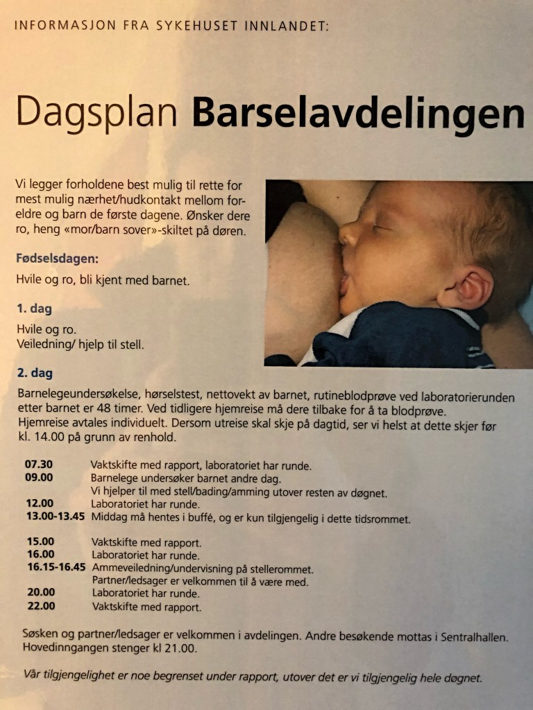 Denní plán začíná větou: „Chceme zajistit ty nejlepší podmínky pro co nejvíce blízký/skin-to-skin kontakt mezi rodiči a dětmi během prvních dnů po porodu. Pokud si nepřejete být rušeni, pověste na dveře cedulku Matka & dítě spí.“