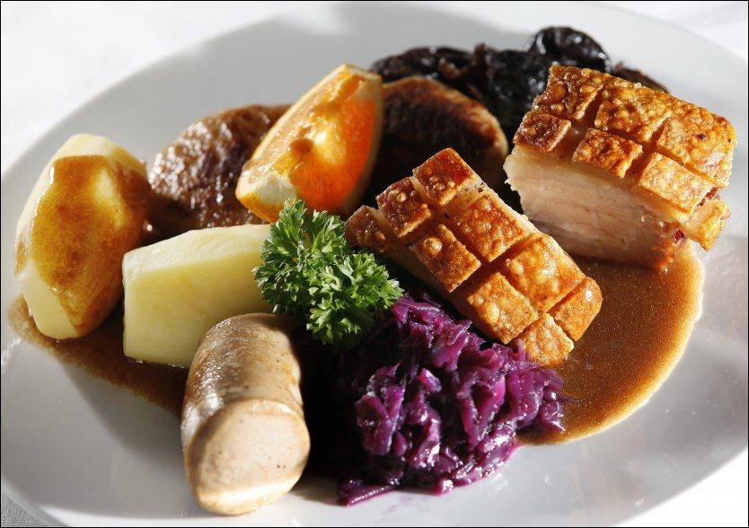 To, co se servíruje na štědrovečerní tabuli se mění v závislosti na krajích nebo rodině. Norsko představuje příliš velké území a rozličné podmínky na to, aby mělo nějaký celkový koncept. Tradiční jídla vlastně ještě pořád odráží dobu, kdy bylo Norsko velmi chudou zemí a kde, díky přírodním podmínkám, bylo problémem pěstovat rozličnou zeleninu. V chovu dobytka vedly prim ovce – i pro možnost zpracování vlny. Někdo tak dodnes podává skopová žebírka vařená v páře (pinnekjøtt) s bramborem a kaší z kedlubny, někdo dává přednost vepřovým žebírkům (svineribbe) s brusinkami, dušeným zelím a švestkami. Někde se podává takový mix – vánoční talíř (juletallarken), který zahrnuje speciální vánoční párky (julepølse), jakési karbanátky (medisterkaker), žebra, brambory, červené nebo bílé zelí (a nebo obě), růžičkovou kapustu, brusinkovou marmeládu, tradiční bramborové placky a taky nesmí chybět klasická norská hnědá omáčka (brun saus). Může se dělat v různých variantách a trochu to připomíná systém Co dům dal.