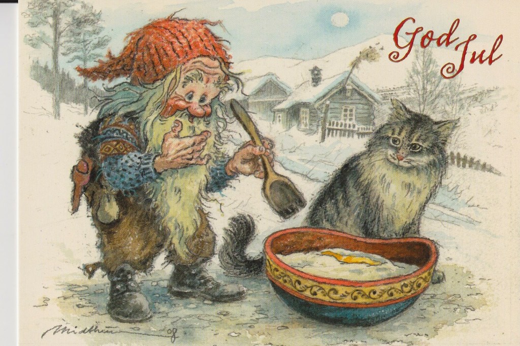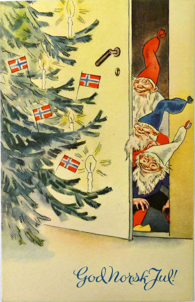 Dárky v Norsku nosí vánoční skřítek (Julenissen). Historicky byl Nissen (nebo také fjøsnissen) malý fousatý skřítek s červenou čepicí, který vždy patřil ke konkrétní rodině, lépe řečeno k celému stavení. Bydlel ve chlívě či na půdě a v průběhu roku dával na hospodářství pozor. Nikdo si ho nechtěl rozházet, aby nezačal dělat neplechu, a proto se mu na Štědrý večer odkládá před dům miska rýžové kaše. A pak je tu Julenissen. Vánoční postava, vycházející z legend o sv. Mikuláši, tedy i vzhledově podobná Santu Clausovi. Ten bydlí v norském Drøbak*, kam mu děti posílají svá přání a jezdí se do jeho domu dívat. V období Vánoc tu je tedy takový mix všech možných skřítků a také podob Julenissen. Toho během Štědrého večera často zastupuje jeden z členů rodiny a rozdává dárky.