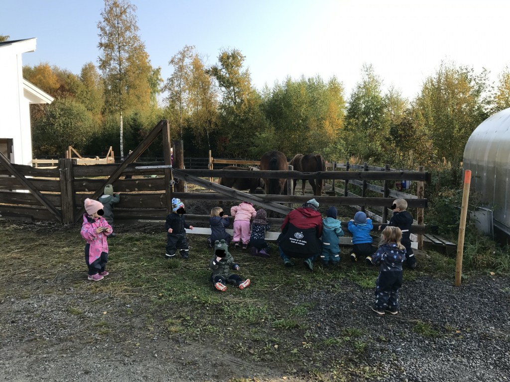 Co můžu zhodnotit s ohledem na naši školku, program mají více než pestrý. Ke školce je přidružená farma, kde mají krávy, ovce, prasata, koně, kozy, slepice a mnoho dalších zvířat. Každý měsíc má každá třída jeden druh na starost, a tak se během celého roku prostřídají. Chodí je krmit, čistit, sbírat vajíčka (ze kterých si pak společně uvaří oběd), sledují stříhání ovcí a další aktivity povinné údržby, starší děti se mohou účastnit zabijaček a celkově se klade důraz na to, aby děti pochopily, kde se bere jídlo, které si můžeme koupit v obchodě. Stejně to tak je i se zahrádkou, o kterou se děti starají a z vypěstované zeleniny si občas vaří obědy. Často také chodí na procházky do lesa, kde si staví přístřešky z větví, balancují na kořenech a kamení a vůbec se učí rozvíjet motoriku v terénu. Ani sport nezahálí. Minulý týden si na pozemku vytvořili kluziště, ale chodí i na běžky (to není zase takové překvapení, říká se, že se Noři rodí s běžkami na nohou), v létě jezdí na kole, starší děti trénují na kajacích. Přímo v areálu mají lezeckou stěnu, provazové prolejzačky a spoustu dalšího vyžití. K dispozici mají i dílny, kde se učí zatloukat hřebíky, pracovat s pilkou a celkově umět využívat přírodní materiály, které si s sebou přinesou den předtím z lesa. Celoročně také využívají venkovní kuchyň a ohniště, kde se učí, jak s ohněm pracovat a štípat dříví. Velký důraz se taky klade na respekt k přírodě, jak se v ní chovat a jak ji chránit. Mají na to hned několik programů. Ovšem i do civilizace je občas vezmou! 😀 Jednou za čas vyrazí například s dětmi do obchodu, kde nakoupí, co jim chybí (často je to máslo, nějaké ovoce nebo mléko) a pak si z toho připraví oběd. Chleba si pečou společně v kuchyni.