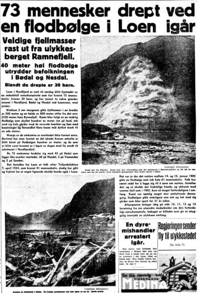 V noci 13. září 1936 došlo k další tragédii. Ze stejného místa jako minule, jen o něco výše na úbočí hory, se opět utrhl kus skály o velikosti více než milionu metrů krychlových a zřítil se do vody. Obrovská vlna nemilosrdně smetla obě spící vesnice. Tentokrát dopadl hůře Bødal, který byl vlastně úplně vymazán z povrchu. Vlna dosahovala výšky až 74 metrů a vzala s sebou vše, co jí stálo v cestě. Zmizelo tak například devět farem se šedesáti domy, škola, obecní dům, loděnice s loděmi a odplavila se veškerá půda. Vrak parníku Lodølen vlna také zachytila a odhodila jej o několik stovek metrů dál, kde zůstal ležet dnem vzhůru. Při neštěstí zemřelo celkem 73 lidí, převážně z vesnice Bødal. Tato událost získala velkou pozornost v tisku a na pohřeb obětí dorazil i korunní princ Olav.