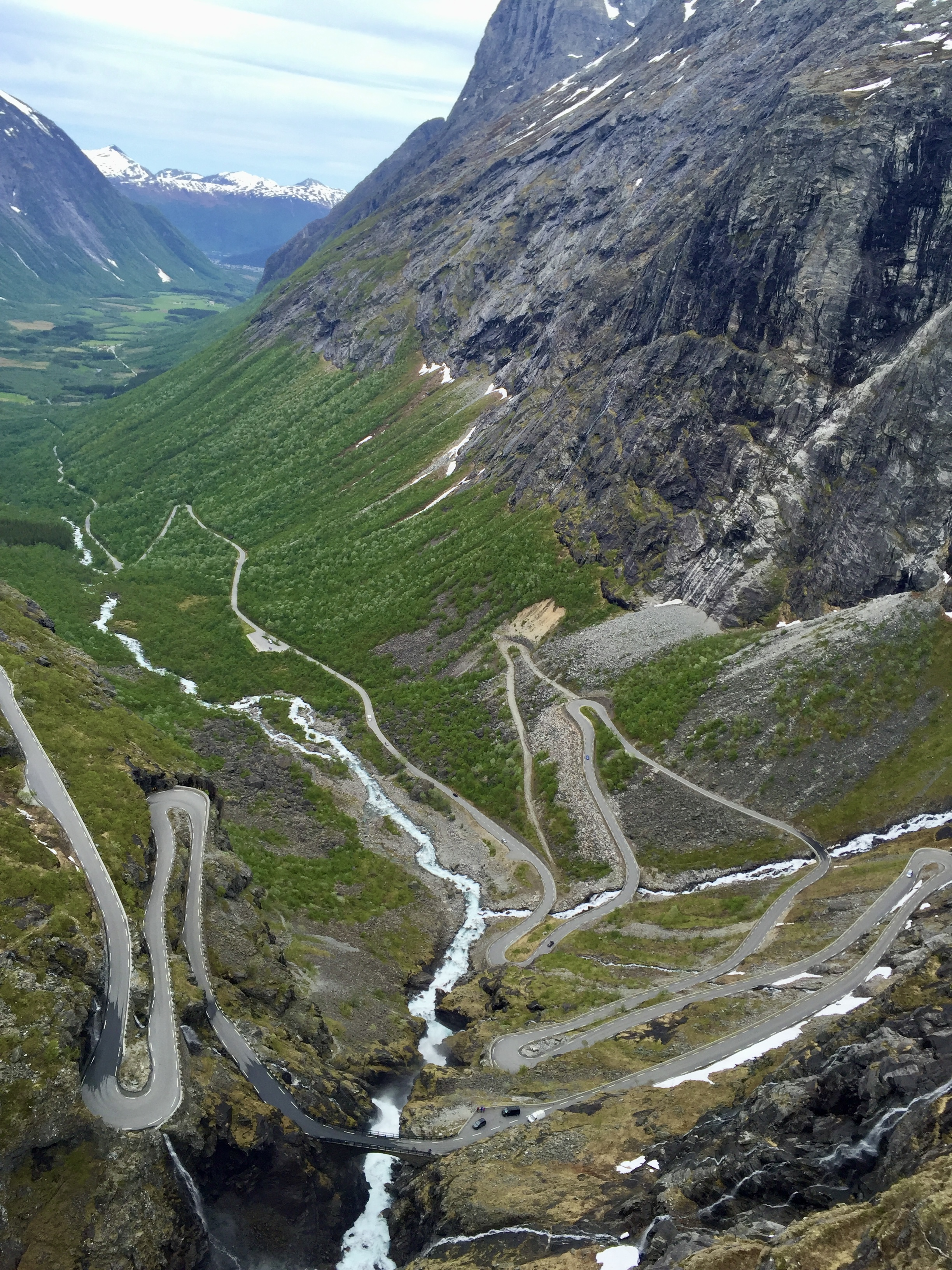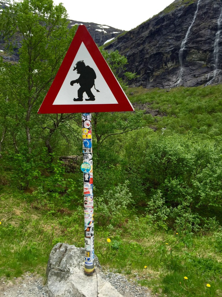 Trollstigen je rozhodně nejznámější trolí destinací v této zemi. Tento Žebřík trolů je starý horský průsmyk, kterým se vine sled jedenácti strmých serpentin. Tipuji, že kameny na krajnicích, které nahrazují svodidla, jsou postaveny ze zubů horského trola. Výhled do údolí rozhodně stojí za to, stejně tak cesta, která je obklopená několika vodopády, z nichž nejdelší měří 180 metrů. Nedaleko od Trollstigen natrefíte na Trollveggen, tedy Trolí zeď. Je to nejvyšší vertikální útes v Evropě a měří téměř 1000 metrů. Toto místo se stalo vyhledávané pro BASE jumping, avšak v roce 1987 se stal, v reakci na několik tragický nehod, skok z Trollveggen nelegálním.